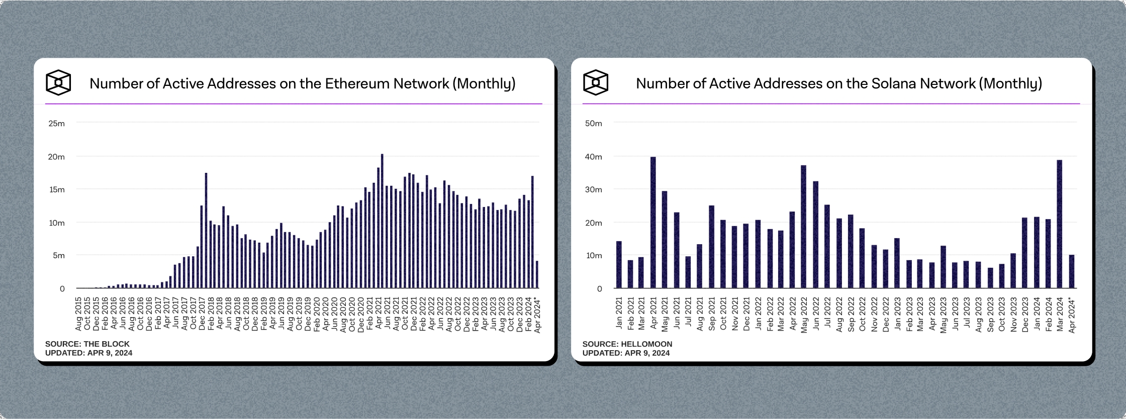 Solana has attracted 38.81M monthly active users vs 17.1M on Ethereum, which makes Solana one of the most used blockchain in crypto in term of monthly active users.